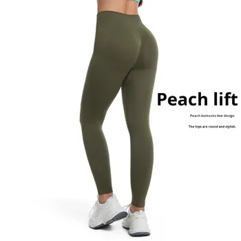 กางเกงโยคะเอวสูงสำหรับผู้หญิงกางเกงฟิตเนสยกก้นสีพีชเอวสูงผ้าสแปนเด็กซ์/ ไนลอน